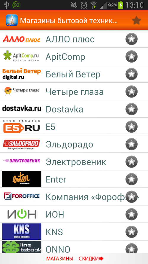 Компьютеры, Телефоны, Ноутбуки, Телевизоры ,Планшеты ,Смартфоны, Стиральные машины , Холодильники, Микроволновки самых популярных фирм. Выбирайте магазин, находите лучшую цену и покупайте! А для того, что бы помочь Вам сэкономить, мы подключили специальный раздел с самыми большими скидками. Заходите в приложение почаще, что бы не пропустить крупную распродажу, ведь скидки обновляются каждый день !Large selection and great prices! This is what distinguishes online stores appliances and electronics, we have collected in this application. Whether you choose a washing machine or a cell phone, these stores you will find exactly what you need! More than 20 of the most popular online stores.