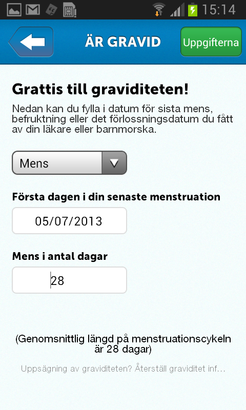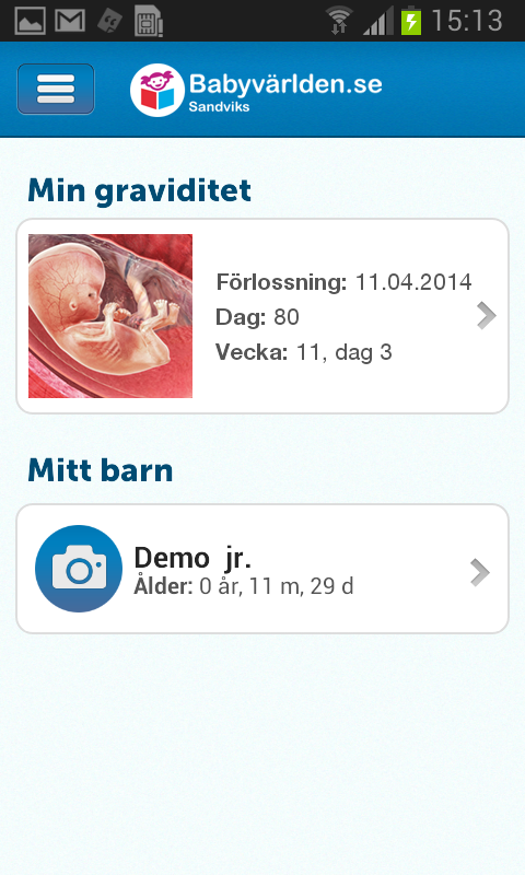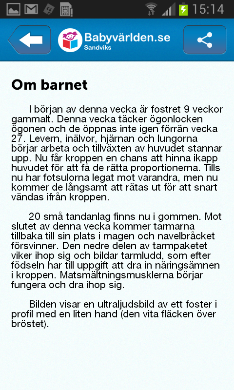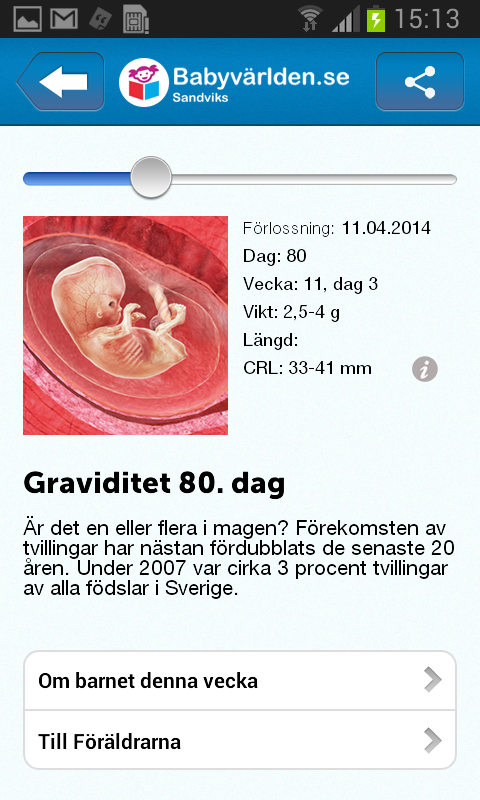 Är du gravid, får du innehållsrik och uppdaterad information om fostret, mamma och pappa varje vecka under graviditeten. Dessutom får du dagligen texter som ger inspiration och eftertanke.