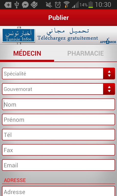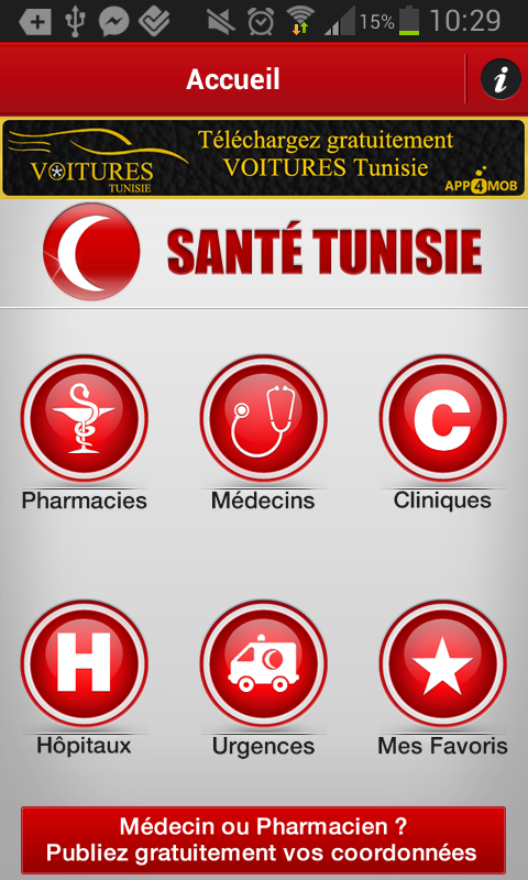 Alors vous n'avez qu'à télécharger SANTÉ TUNISIE.Looking for a medical service in Tunisia: