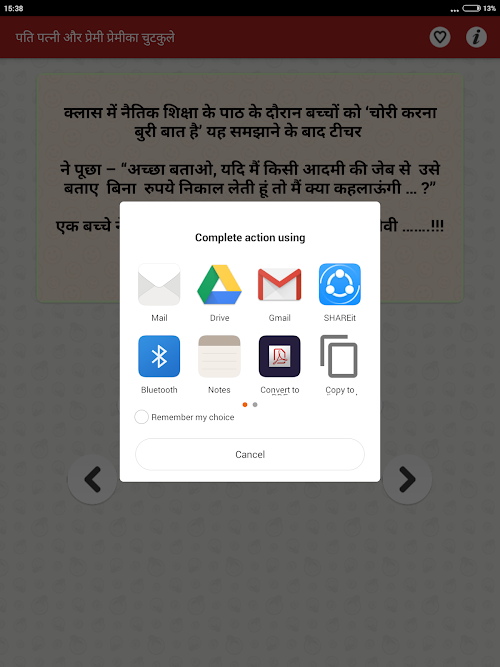 This version of पति पत्नी हिंदी जोक्स और प्रेम Android App comes with one universal variant which will work on all the Android devices.