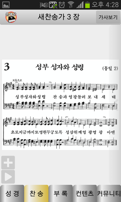 - 원하는 찬송가의 악보를 실시간으로 다운로드하여 볼 수 있습니다.