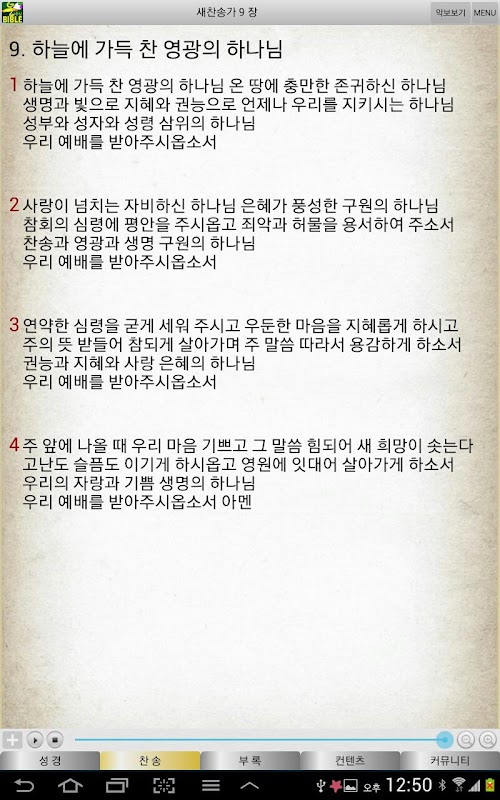 성경과 찬송가를 함께 보고 들을 수 있는 온세상 성경&찬송!!