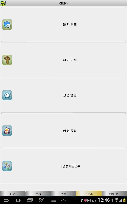 Bible reading is displayed and the location of the auto-scrolling support. Thus, reading the Bible deuleumyeonseodo can easily focus on the Bible text.