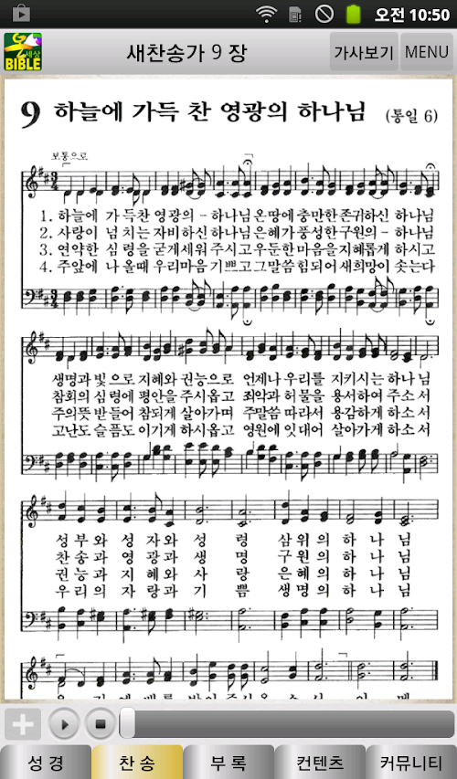 성경과 찬송가를 함께 보고 들을 수 있는 온세상 성경&찬송!!