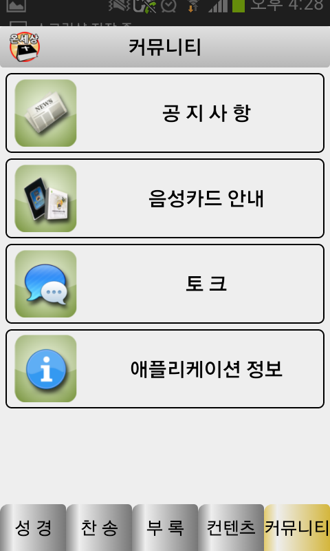 - 보관함 기능으로 구절을 저장하고, 저장된 구절에서는 SMS전송, 위젯설정, 반복재생등의 기능을 제공 합니다.