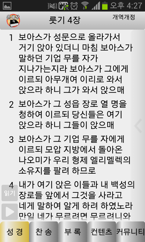 - 개역개정에서는 두가지의 재생형태(입체낭독, 빠른낭독)를 지원 합니다.