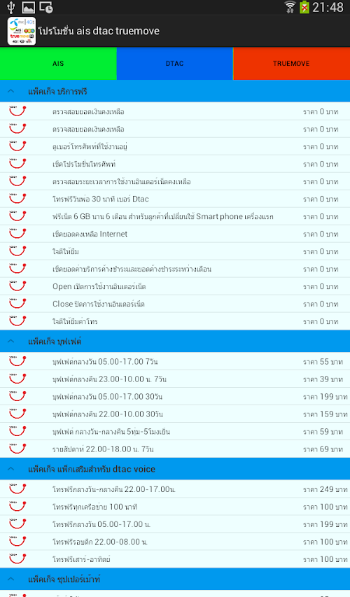แอพนี้จะรวมรวมโปรโมชั่นมือถือทั้ง โทรและเน็ตของ ทั้ง 3 ค่าย แบกเป็นกลุ่ม และ packet ตามลำดับเพื่อให้เข้าในง่าย ครบทุกรายละเอียด