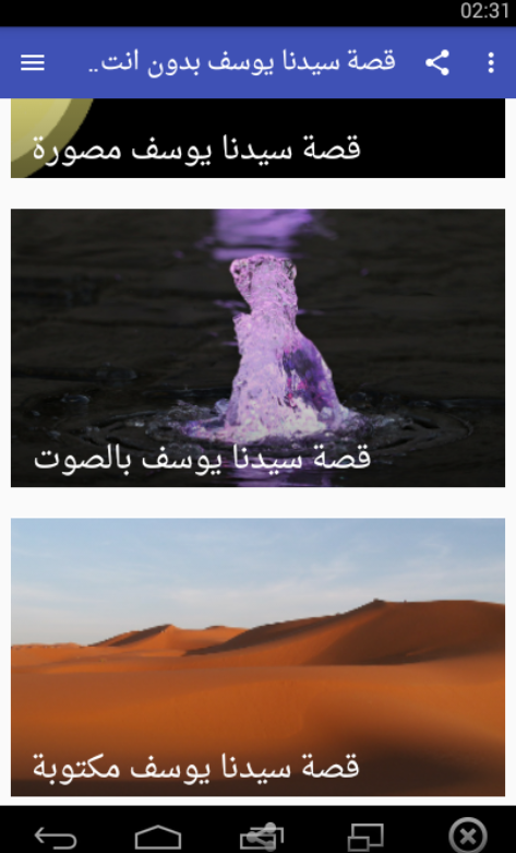 لأي تساؤل يمكنكم مراسلتنا عبر الايميل او مباشرة عبر التعليقات الخاصة بالتطبيق مع امل ان نكون دائما عند حسن ظنكم. The application of the story of Joseph peace be upon him without Net Prophet Yusuf tells stories, he received his story in the Qur'an in Surah Yusuf; and received his story in the Sunnah that Joseph Otti bisected Hassan. Use of the Qur'an and the books of interpretation, history and modern, as well as some books of Sunni Islam.