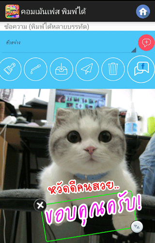 ☺ เลือกภาพจากอัลบั้ม หรือถ่ายภาพจากกล้อง แล้วพิมพ์ข้อความได้เลย