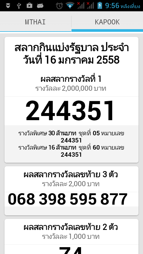 This version of ตรวจฉลากกินแบ่งรัฐบาล ตรวจหวย Android App comes with one universal variant which will work on all the Android devices.