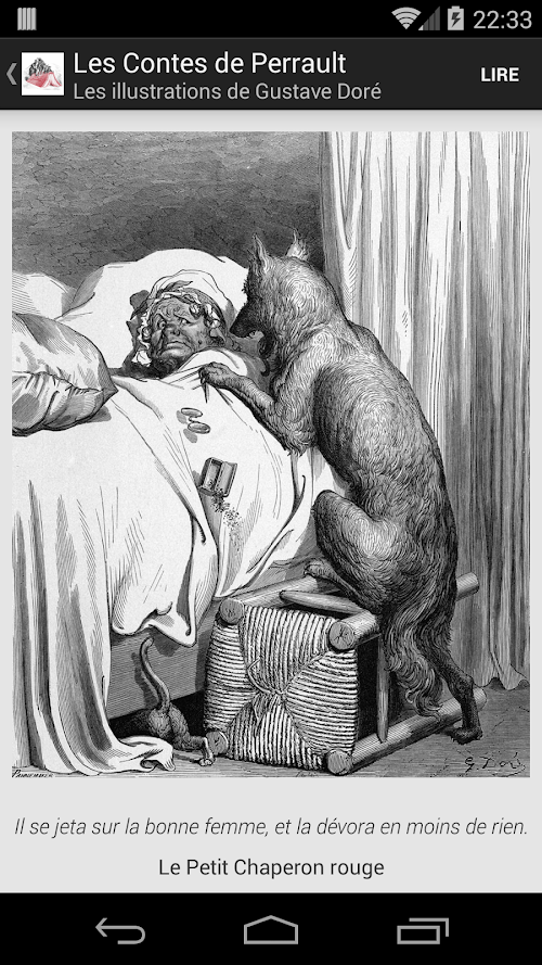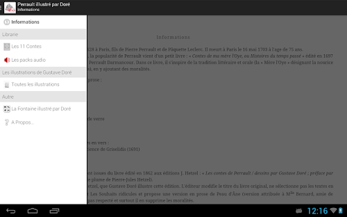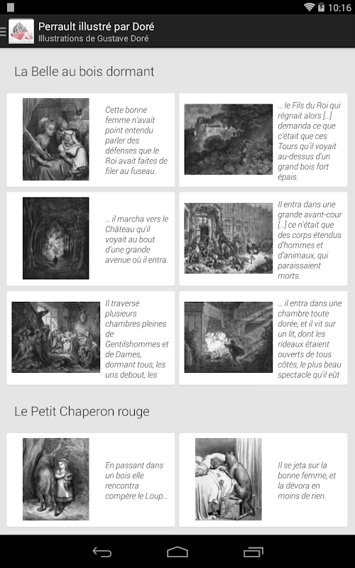 Published there more than three centuries, tales of Perrault are now world famous. This application delivers the original version of these stories that have rocked your childhood and you can rediscover!