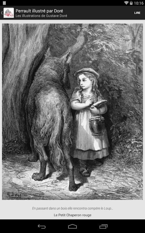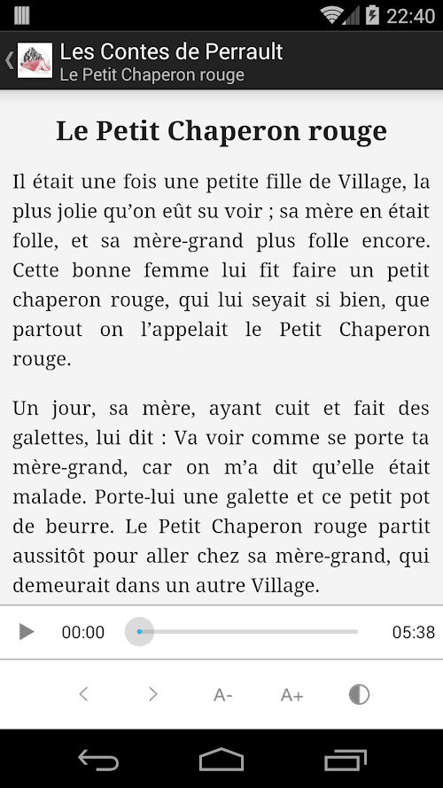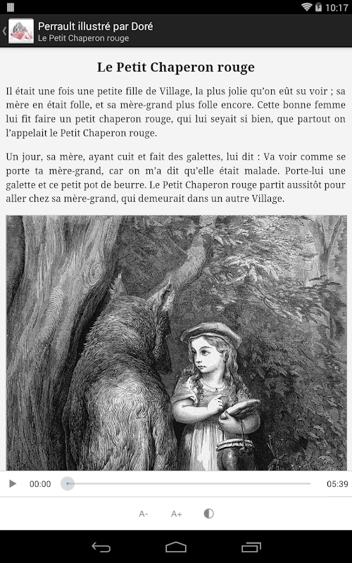 To address the stories differently, the application offers you the audio release. Little Red Riding Hood is available to listen. You can then enrich your application by downloading the tales of your choice via integrated shopping.