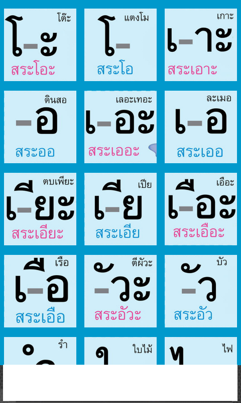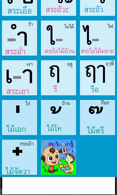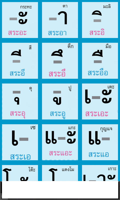 สระ ฝึกออกเสียง สระในภาษาไทยThe application to function. Let children practice Thailand an improvement in vision and hearing. When a child sees a briquette Ze like an A or an image and then used to press the letter R, it is noisy told the press pool is.