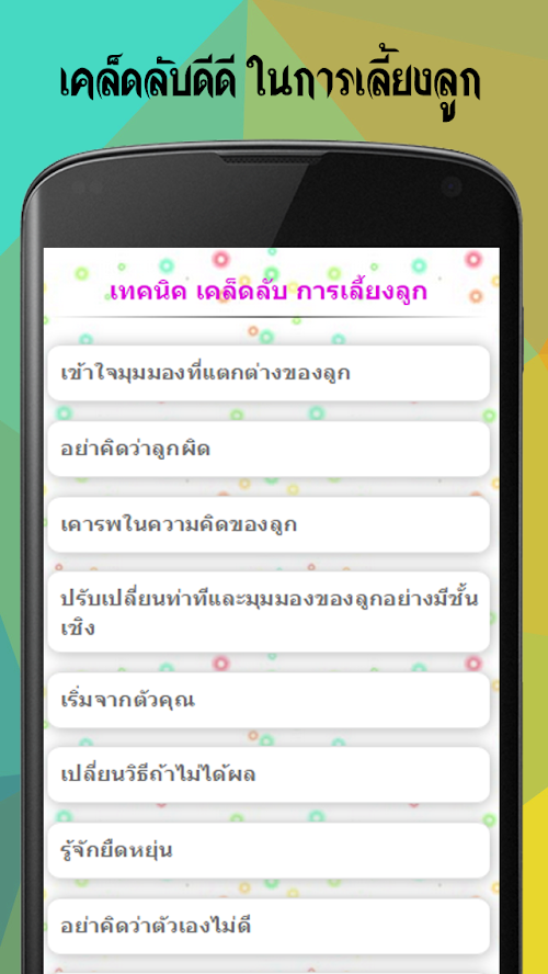 If you are looking to download other versions of เทคนิค เคล็ดลับ การเลี้ยงลูก Android App, We have 1 version in our database. Please select one of them below to download.