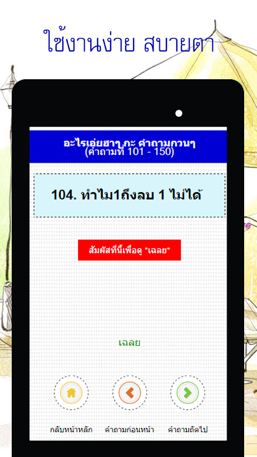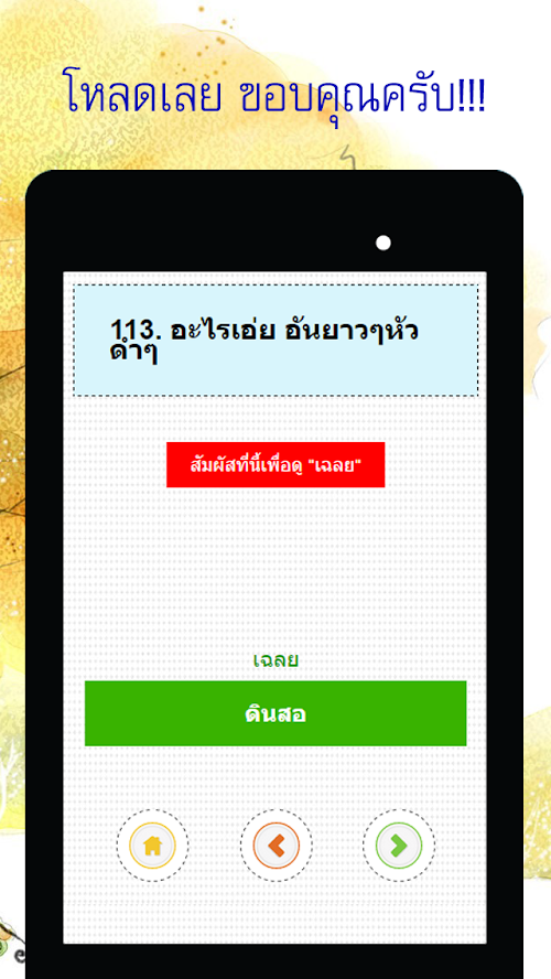 ค้นหาหา คำถาม มาให้ท่านเรื่อยๆน่ะครับ ... แหะๆ ขอบคุณมากมากครับThis app is a provocative question: What is the funny things.