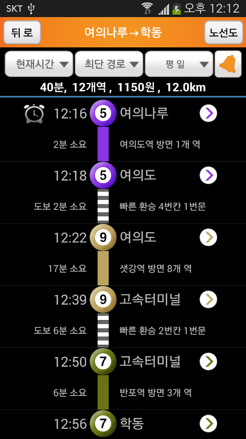 4.경로 검색 결과 환승역과 도착역 도착 알림을 시간 이나 위치로 설정하여 알림 기능.