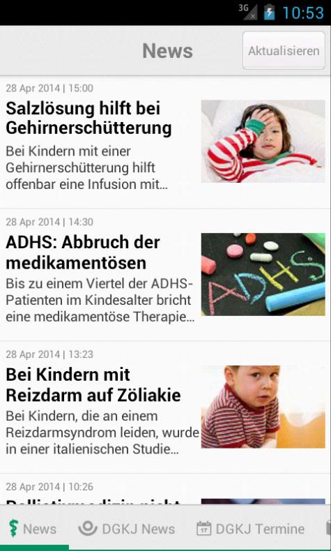 Under "News" Pediatrics News from the Medical Portal to read springermedizin.de. The news are partly behind the free doctor's login by Springer Medizin. About the mobile short registration this is easy to set up.