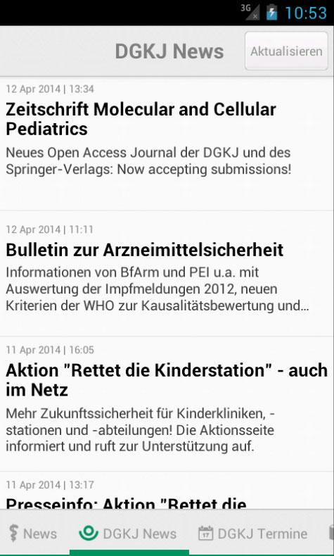 Die News App ist der ideale Begleiter für alle Kinder- und Jugendärzte oder Ärzte, die sich für Pädiatrie interessieren und auf dem Laufenden bleiben möchten.The News app delivers breaking news, congress reports and appointments from the Department of Pediatrics ─ perfect for mobile reading and ideal for children and young physicians.