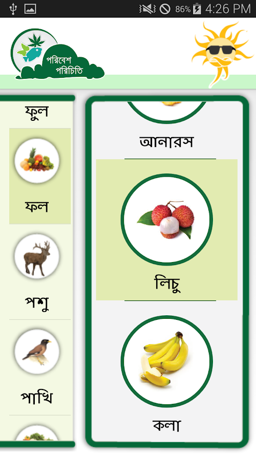 4) পরিবেশ-পরিচিতি (Introduction to Nature) – Fruits, flowers, birds, animals, vegetables, foods. (Samsung device only)