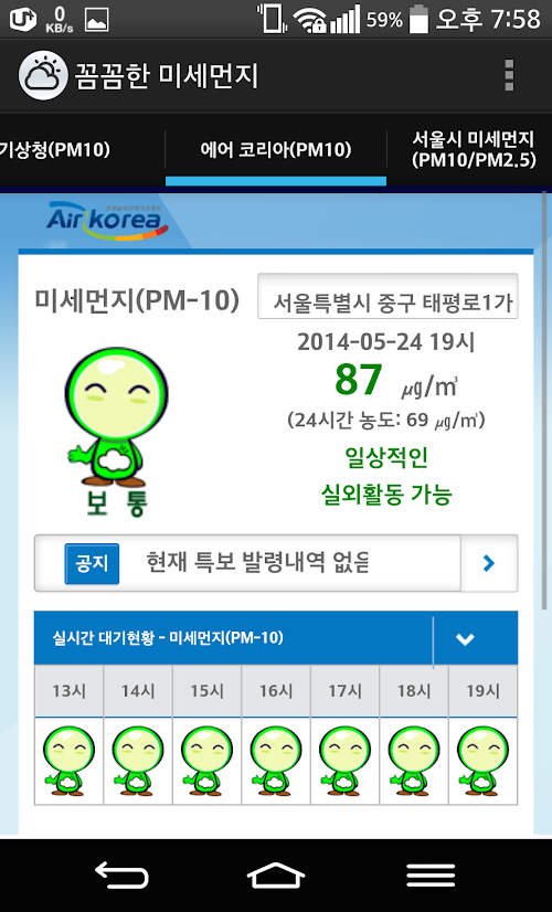 유용하게 활용하세요 ^^It's inconvenient that the apps listed as fine dust / ultrafine dust information differ in numbers, where the source is, and the latest updates.