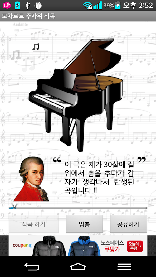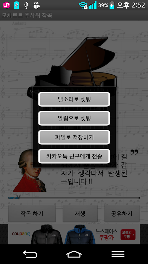 About 모차르트 주사위 작곡 - 랜덤왈츠 벨소리 설정,카톡공유 Android App