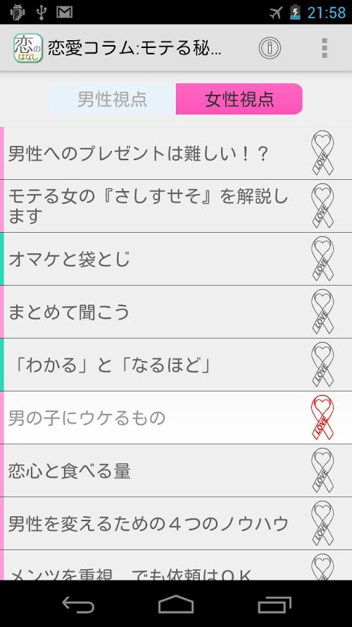 男性視点・女性視点別に体験談・コラムを収録して、あなたの恋愛を応援します!!