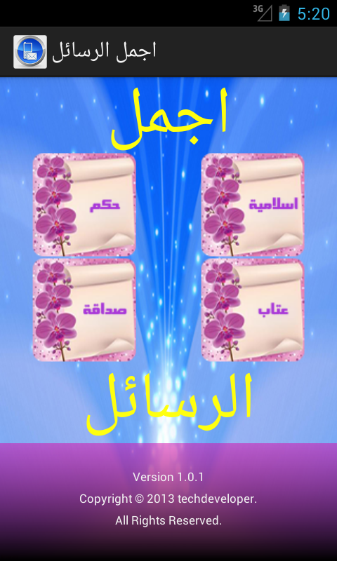 This version of اجمل الرسائل Android App comes with one universal variant which will work on all the Android devices.
