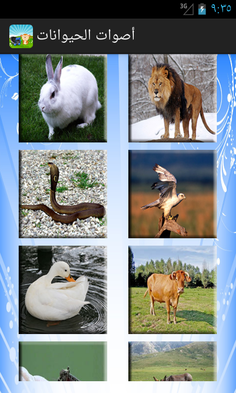 تطبيق جميل و رائع يعرض أصوات الحيوانات و أسمائها. Application displays a beautiful and wonderful animal sounds and names.