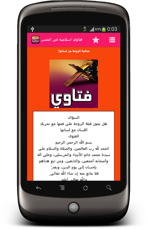 في ايامنا هذه كثرت الفتاوي الاسلامية في جميع المجالات سواً كانت صحيحة او غير صحيحة لذا نقدم لكم تطبيق فتاوي اسلامية في الجــــنس في جميع جوانبه Nowadays abounded Islamic fatwas in all areas Sawa was correct or incorrect, so we offer you the application of Islamic Clerics on sex in all its aspects