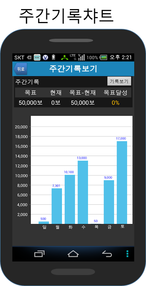 .금일 걷기기록은 다음날 0으로 초기화되며, 주간기록은