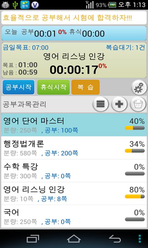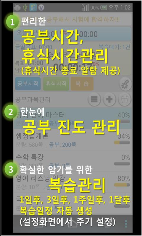 키워드: 공부시간 공부진도 복습 암기 시험 공무원 수능 study review time manage App of the study progress, gongburyang, study time, break time and
