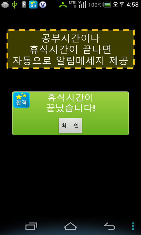 공부시간이 끝나면 자동으로 알림을 제공해 주어 시험대비로