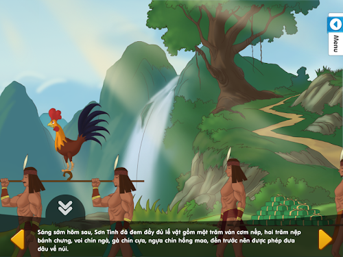 Wedding presents including a hundred games glutinous rice, glutinous rice cakes, two hundred, nine elephant tusks, spurs cooked chicken, cooked horse feathers, each one a double. Son Tinh was only able to find the product quickly submit to the king.