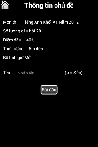 > Mỗi lần thi các câu hỏi được chọn một cách ngẫu nhiên