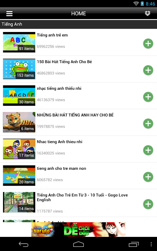 Ứng dụng chọn lọc những video theo danh mục như sau: