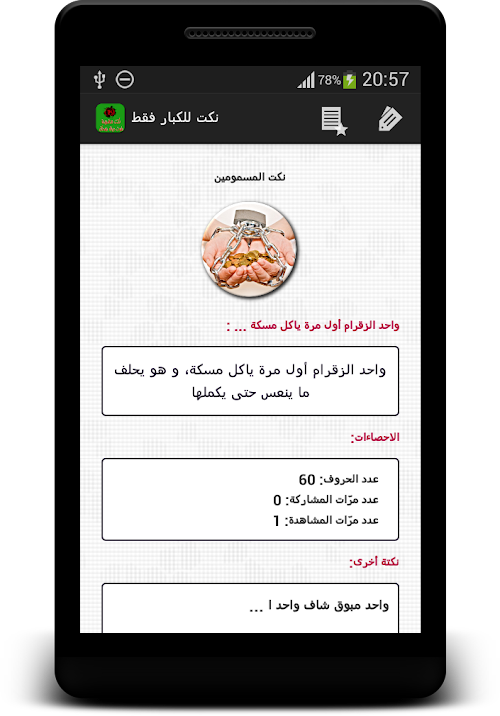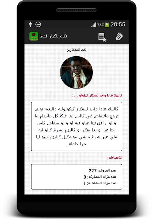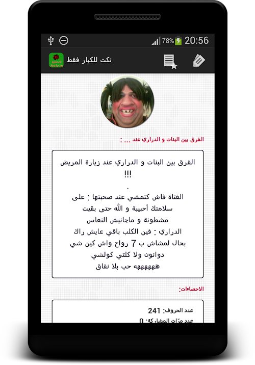 يجمع هدا جميع النكت المغربية في جميع المجالات التي يمكنكم مشاركتها مع اعز اصدقائكم عبر المواقع التواصل الاجتماعي كما يمكنكم ايضا ارسالها عبر الرسالة النصية القصيرة بكل سهولة Hedda combines all Moroccan jokes in all areas in which you can share with your friends dearest via social networking sites also can also be sent via SMS text message with ease