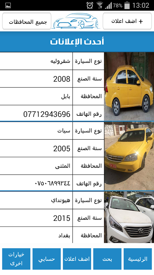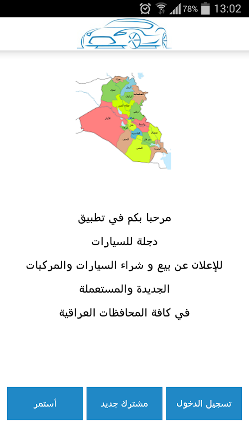 تطبيق متخصص في عرض إعلانات بيع وشراء السيارات والمركبات الجديدة والمستعملة والإعلانات التجارية للشركات والمؤسسات والدوائر العامة والخاصة والأشخاص المهتمين بتجارة السيارات والمركبات. يهدف التطبيق الى تقديم خدمة لتجار السيارات والمركبات من جهة والمواطنين من جهة اخرى ممن يرغبون في الأعلان عن بيع او شراء السيارات أو المركبات من أسواق السيارات والمركبات في كافة المحافظات العراقية وكذلك في بقية أقطار الوطن العربي.Application Specialist in display advertising buying and selling new cars and used vehicles and commercials for companies and institutions, public and private departments and interested persons to trade cars and vehicles. The application is designed to provide a service to car dealers and vehicles on the one hand and on the other hand, citizens who want to advertise the sale or purchase of cars or vehicles from cars and vehicles markets in all Iraqi provinces as well as in the rest of the Arab countries.