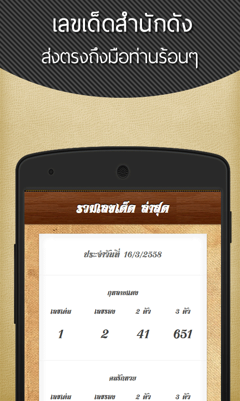 This version of หวย รวม เลขเด็ด สำนักดัง Android App comes with one universal variant which will work on all the Android devices.
