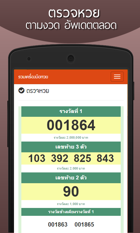 - ตรวจหวย : ใบตรวจหวยรายงวดอะพเดตไวไม่รอนานส่งตรงถึงมือท่าน