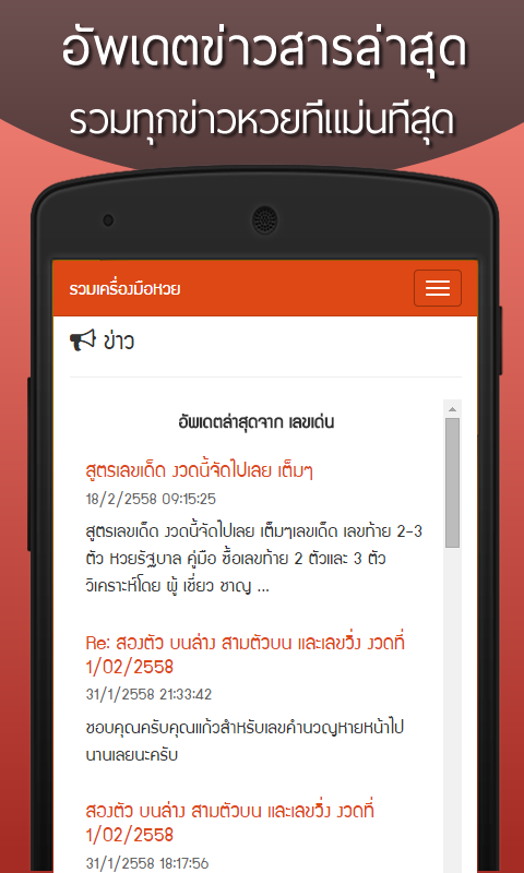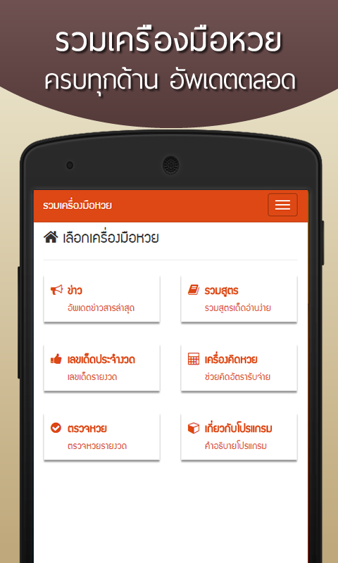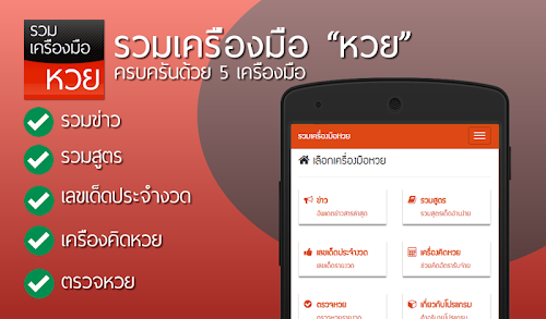 ครบถ้วนในที่เดียว ได้แก่ ข่าว สูตร ตรวจ เครื่องคำนวณ เลขเด็ด แอพเดียวจบทุกอย่าง