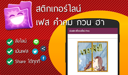 This version of เม้นเฟส สติ๊กเกอร์ ไลน์ คำคม Android App comes with one universal variant which will work on all the Android devices.