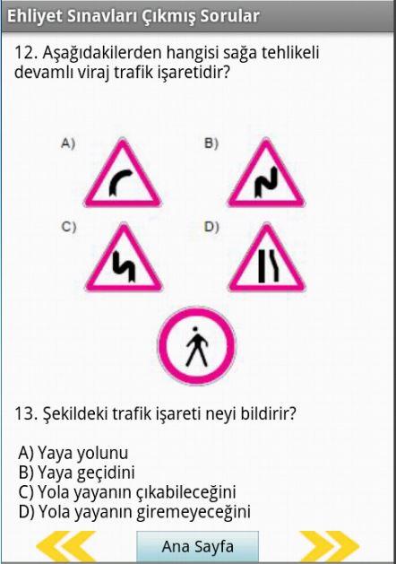 Bu uygulama son 4 yılın ehliyet sınavlarında çıkmış sorular ve cevaplarını içermektedir.