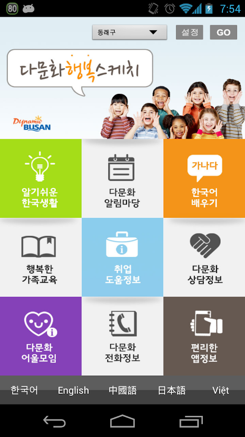 다문화 가족과 함께하는 부산시 모바일 서비스. 내 손안의 부산 다문화 지원정보!