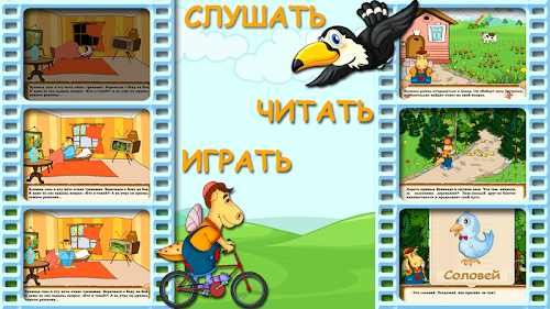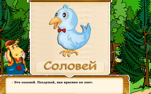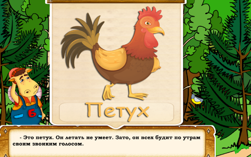 Учимся читать с Буквоедом.Interesting story with interactive elements hold the child's attention. It's so funny to disperse the clouds, wake Barrister, collect bird of the individual elements, and still make a small but self-discovery and learn the basic features of birds. Interactive Fairy Tale is available in two modes: read and listen to. At the end of the fairy tale child will be able to collect 6 puzzles and enshrine the notion of "The Birds".
