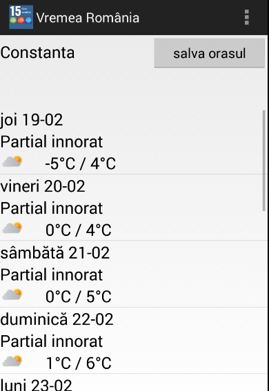 ** 15 zile prognoza pe aplicație pentru România, cere să aibă acces la internet pentru utilizarea datelor meteorologice reale.