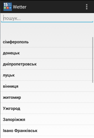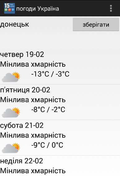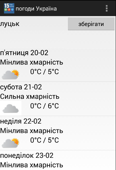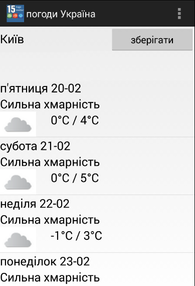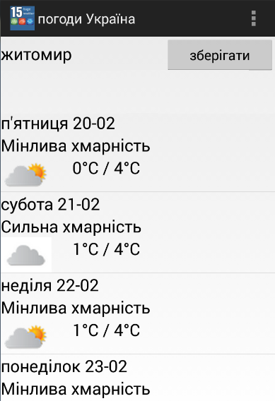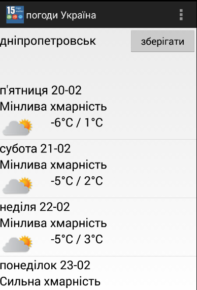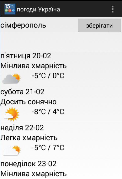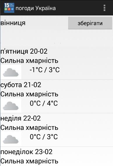 ** Популярні міста протягом 15 днів прогнозу погоди Україна додаток;