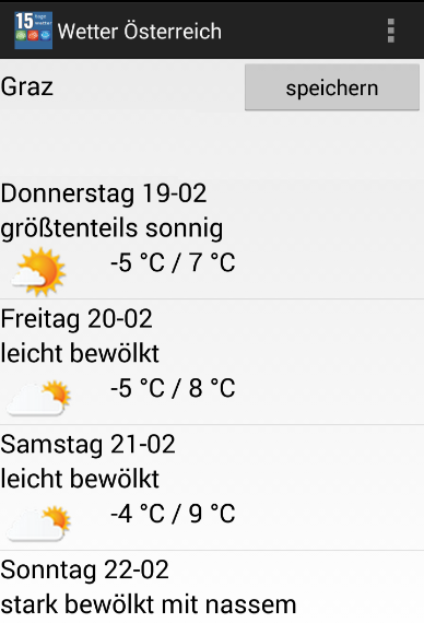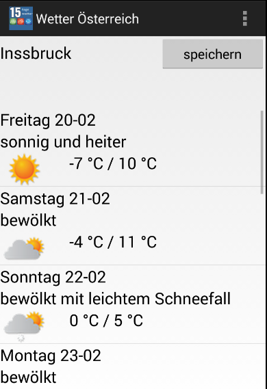 ** 15 days weather forecast app for United States of Austria, needed to have internet access for the use of current weather data.