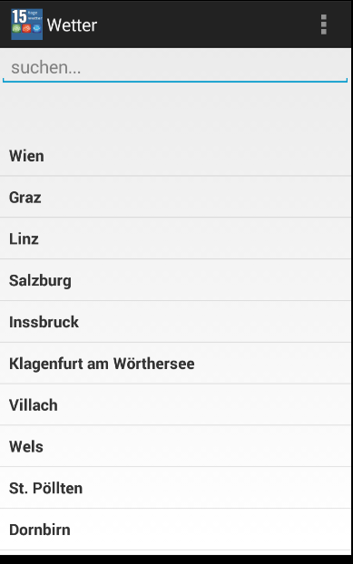 ** Beliebte Städte in 15 Tage Wettervorhersage Österreich app;