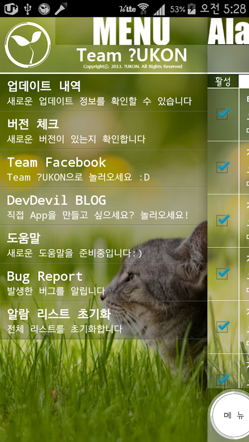 3. 차기 개발중인 알람에서 훔쳐온 체크박스가 도입 되어 알람을 키고 끄는 체크박스가 보다 직관적으로 변경됩니다.