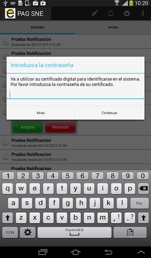 3. You must install your electronic certificate on the device, allowing you to enter your mailbox to accept, sign or reject any communication or notification.